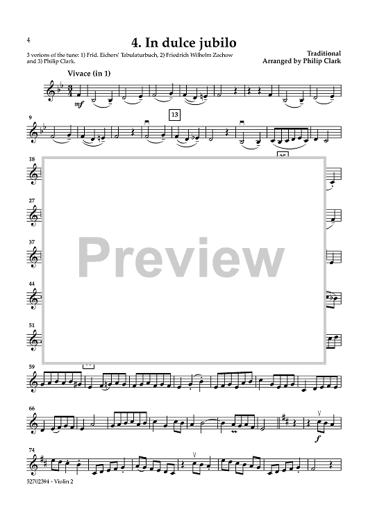 Digital Sheet Music for In Dulce Jubilo - Eight Traditional Carols for String Trio - Violin 2 (for Viola) by , Various, Philip Clark scored for String Trio; id:460244