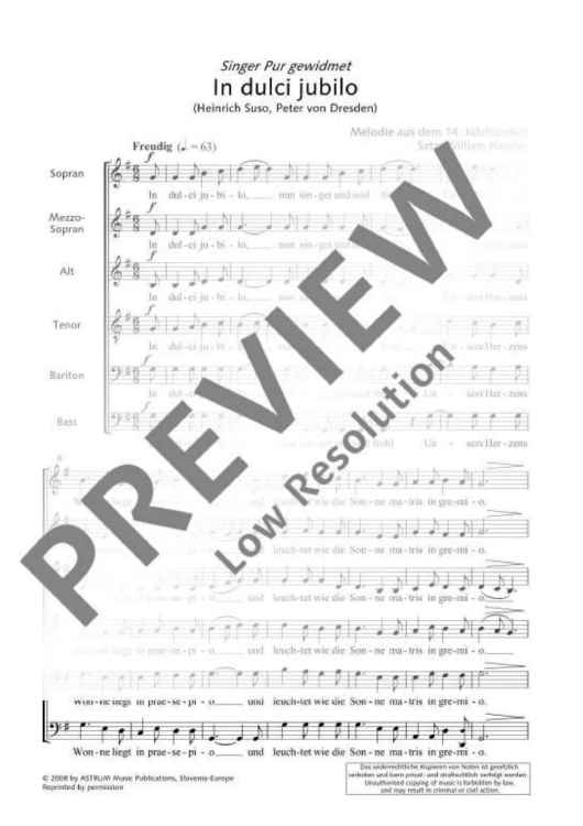 Digital Sheet Music for In Dulci Jubilo by William Hawley, Singer Pur scored for Mixed Choir (smezatbarb) Or 6 Solo Parts; id:501122
