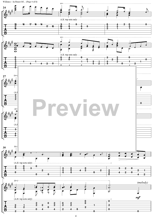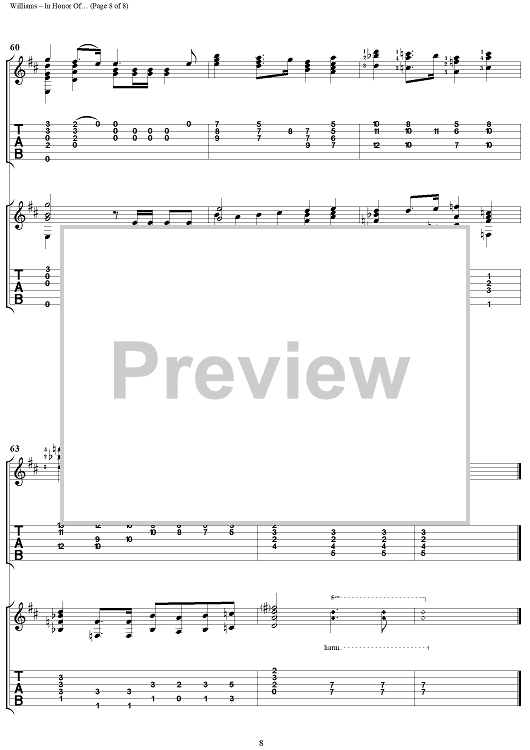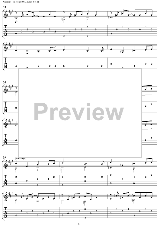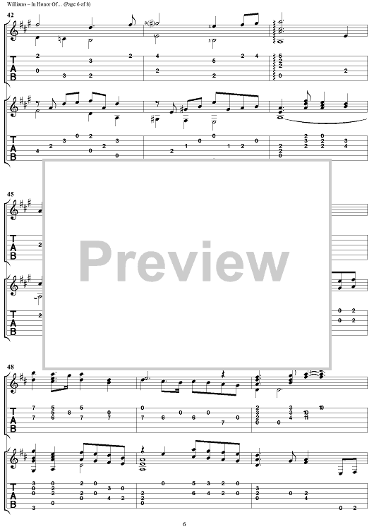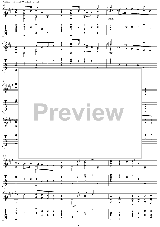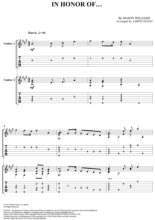 Digital Sheet Music for In Honor Of... by Aaron Stang, Mason Williams scored for Guitar Tab (2); id:304379