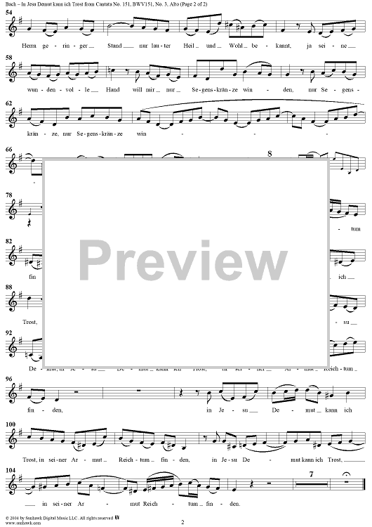 ""In Jesu Demut kann ich Trost", Aria, No. 3 from Cantata No. 151: "Süsser Trost, mein Jesus kömmt" - Alto" Sheet Music by Johann Sebastian Bach