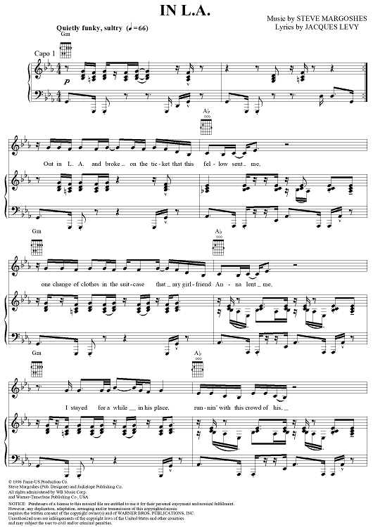 Digital Sheet Music for In L.A. by Steve Margoshes, Jacques Levy scored for Piano/Vocal/Chords; id:359473