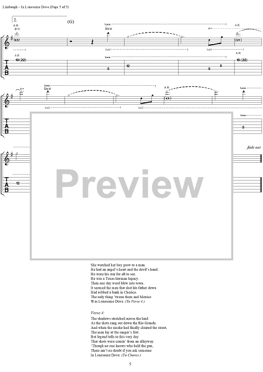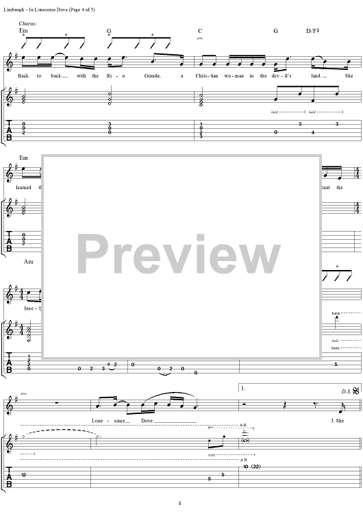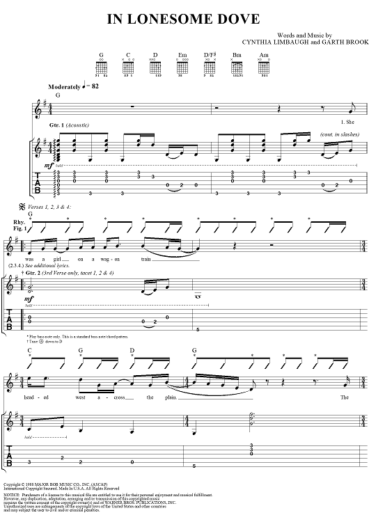 Digital Sheet Music for In Lonesome Dove by Garth Brooks, Cynthia Limbaugh scored for Guitar Tab/Vocal; id:250736