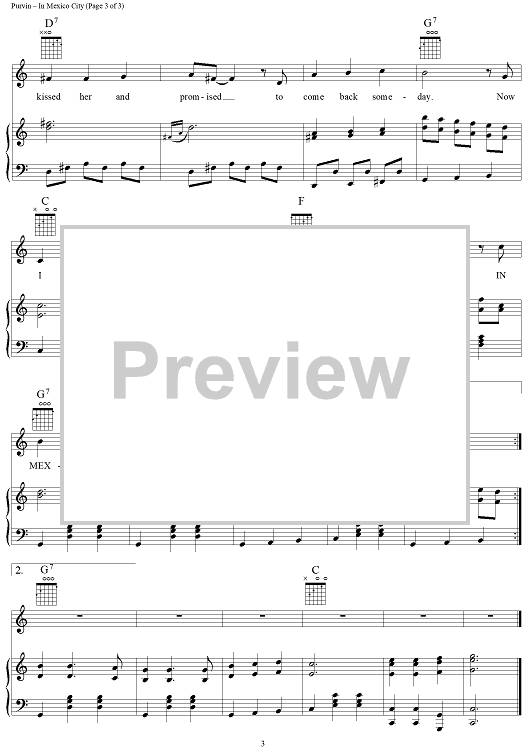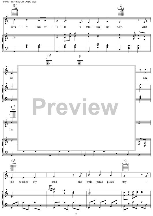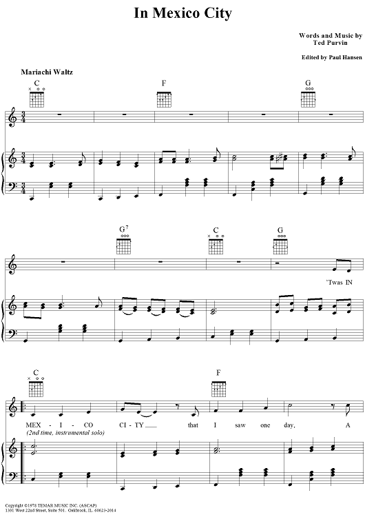 Digital Sheet Music for In Mexico City by Ted Purvin scored for Piano/Vocal/Chords; id:96066