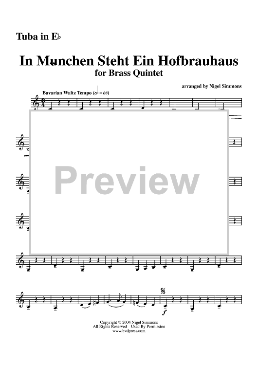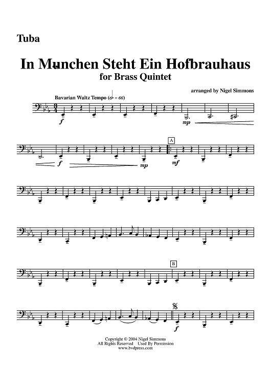 "In München Steht Ein Hofbrauhaus - Tuba" Sheet Music by