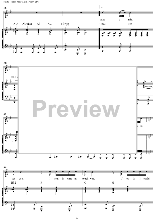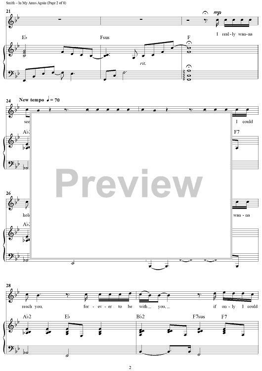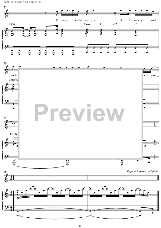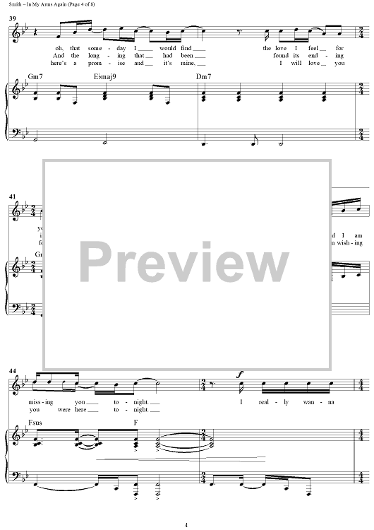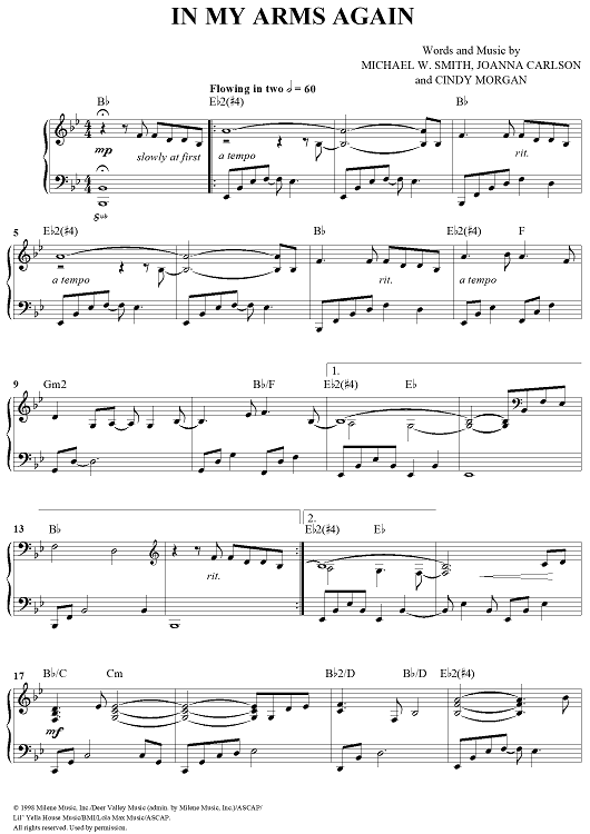 Digital Sheet Music for In My Arms Again by Michael W. Smith, Cindy Morgan, Joanna Carlson scored for Piano/Vocal/Chords; id:258040