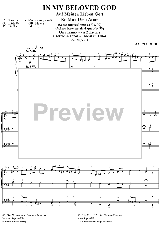 Digital Sheet Music for In My Beloved God, from "Seventy-Nine Chorales", Op. 28, No. 7 by Marcel Dupre scored for Organ Solo; id:270969