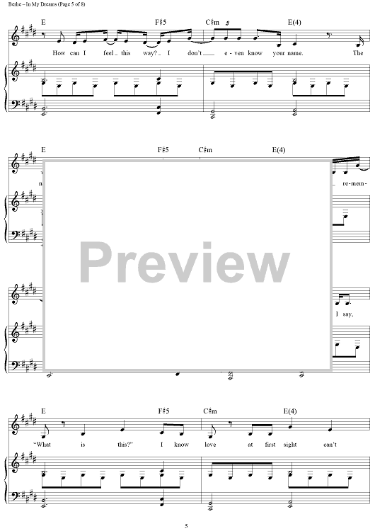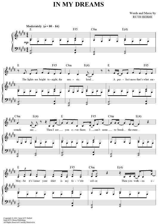 Digital Sheet Music for In My Dreams by Ruth Berhe, Ruth B. scored for Piano/Vocal/Chords; id:463235