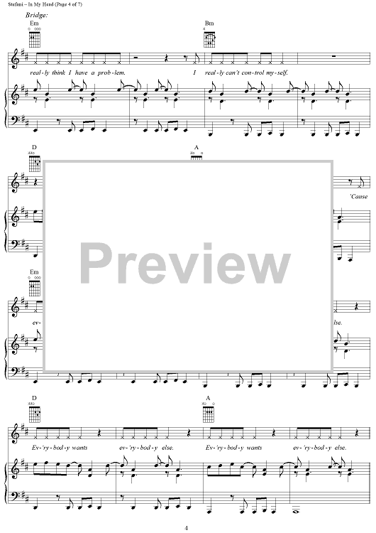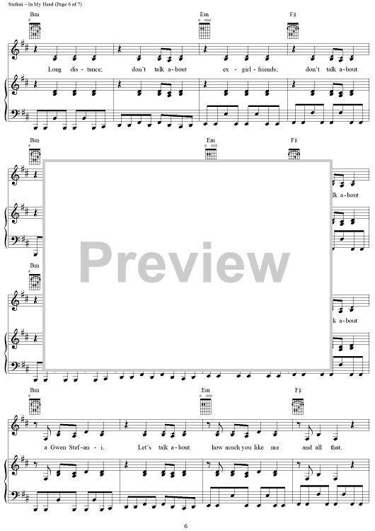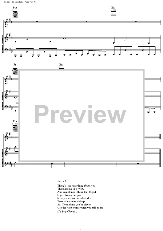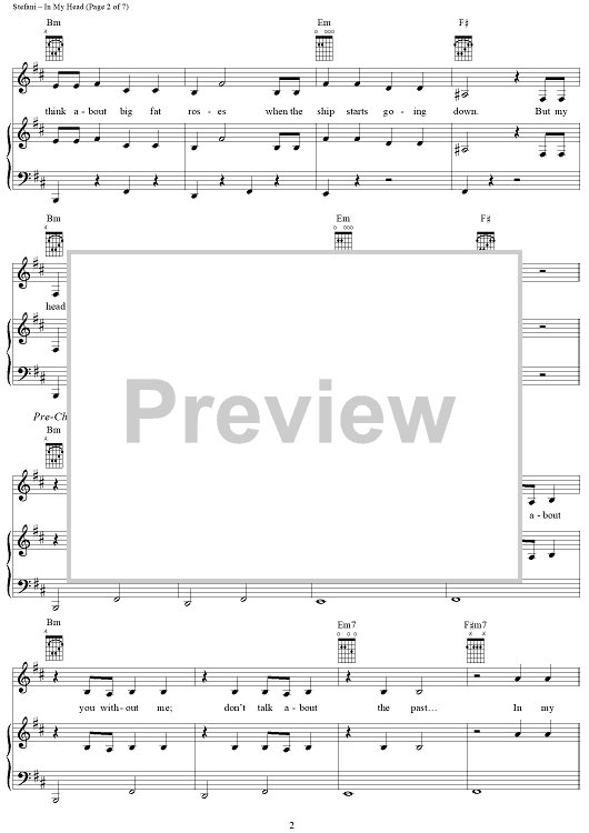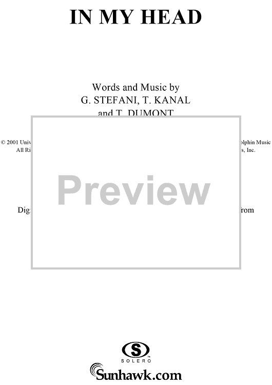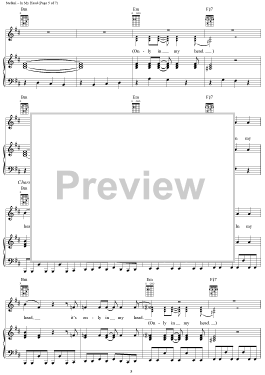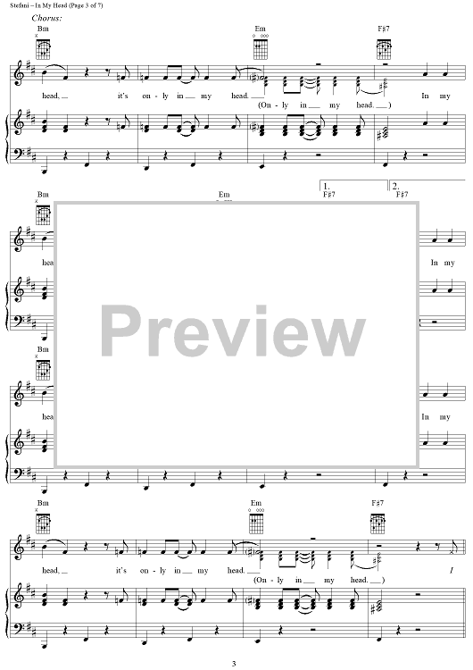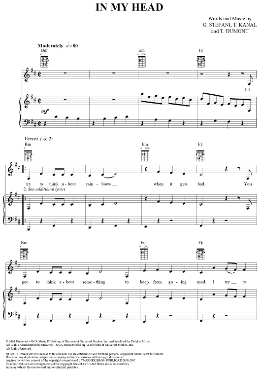 Digital Sheet Music for In My Head by No Doubt, Tom Dumont, Tony Kanal, Gwen Stefani scored for Piano/Vocal/Chords; id:293584
