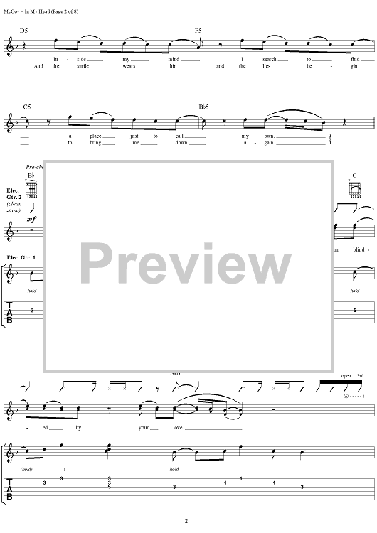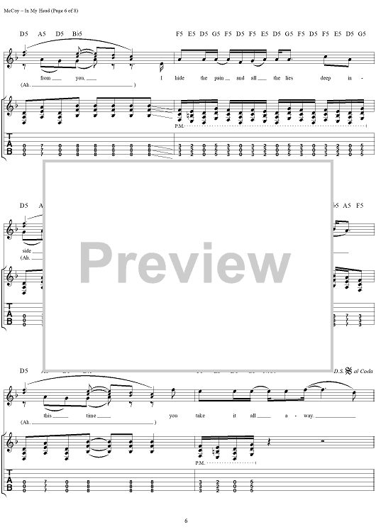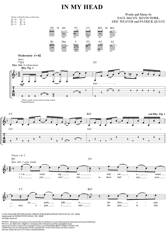 Digital Sheet Music for In My Head by 12 Stones, Paul McCoy, Kevin Dorr, Eric Weaver, Patrick Quave scored for Guitar Tab/Vocal; id:304417