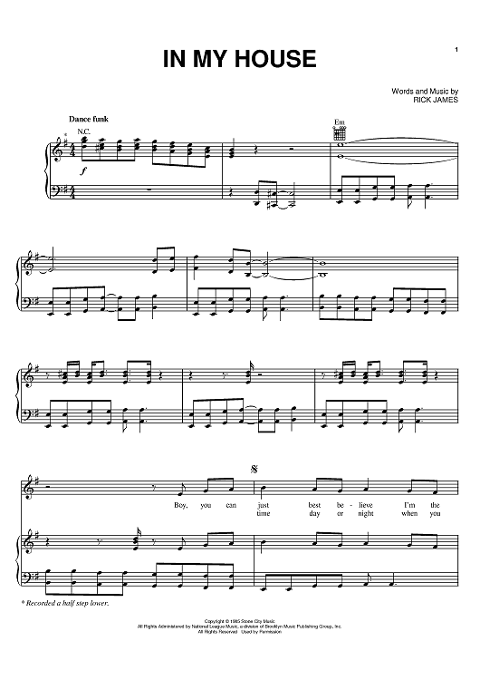 Digital Sheet Music for In My House by Rick James, Mary Jane Girls scored for Piano/Vocal/Chords; id:398182