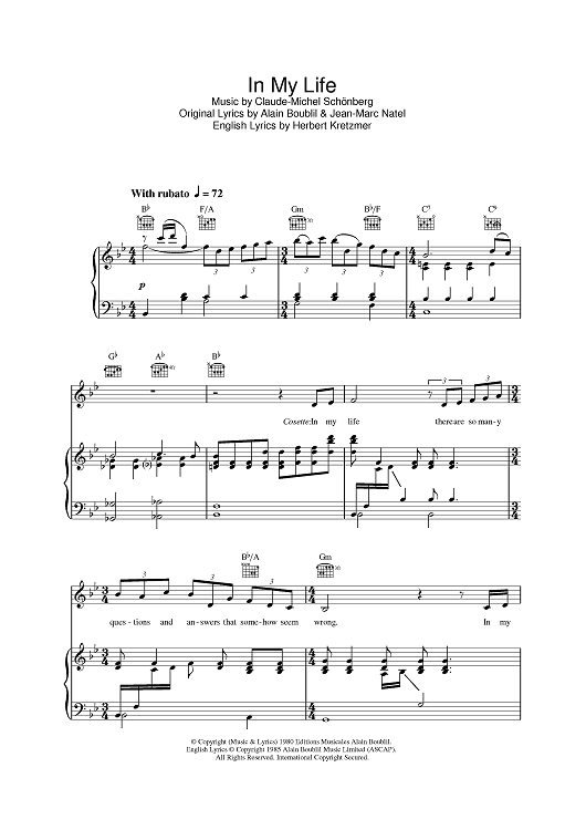 Digital Sheet Music for In My Life by Claude-Michel Schonberg, Herbert Kretzmer, Alain Boublil, Jean-Marc Natel scored for Piano/Vocal/Chords; id:401445