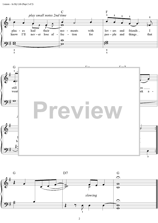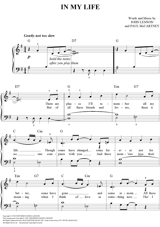 Digital Sheet Music for In My Life by Paul McCartney, The Beatles, John Lennon scored for Easy Piano/Vocal/Chords; id:448661