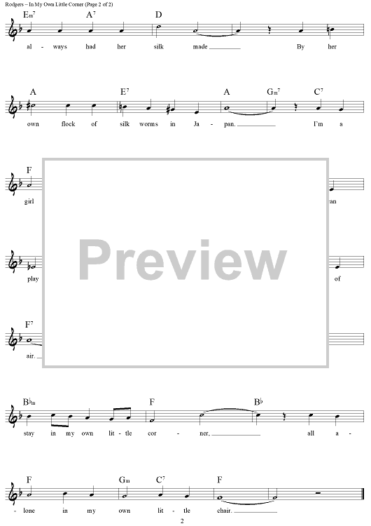 Digital Sheet Music for In My Own Little Corner by Richard Rodgers, Oscar Hammerstein II scored for Lead Sheet; id:442001