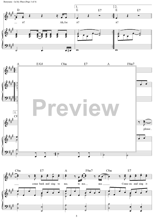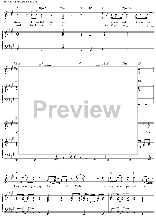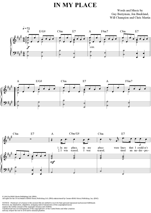 Digital Sheet Music for In My Place by Chris Martin, Coldplay, Jonny Buckland, Guy Berryman scored for Piano/Vocal/Chords; id:321260