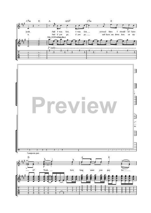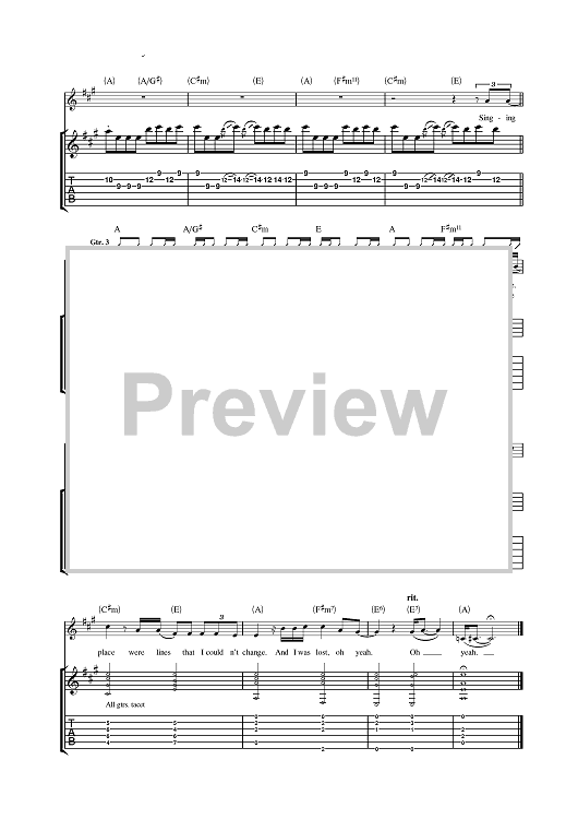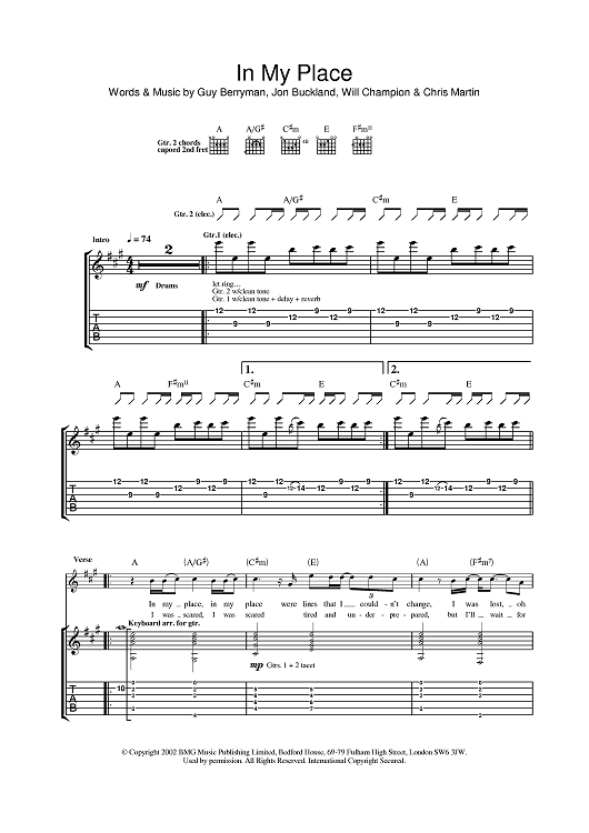 Digital Sheet Music for In My Place by Coldplay scored for Guitar Tab; id:377667