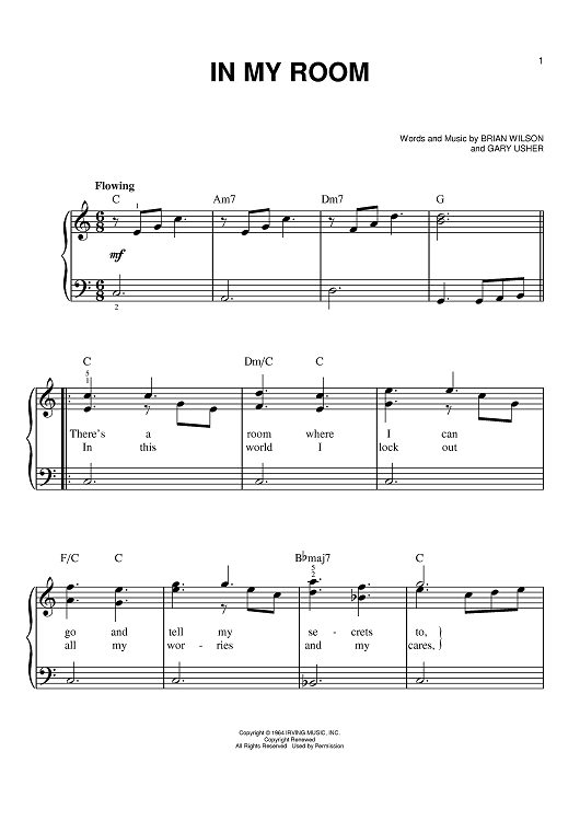 Digital Sheet Music for In My Room by Brian Wilson, The Beach Boys, Gary Usher scored for Easy Piano; id:367326