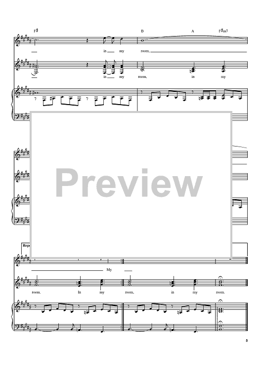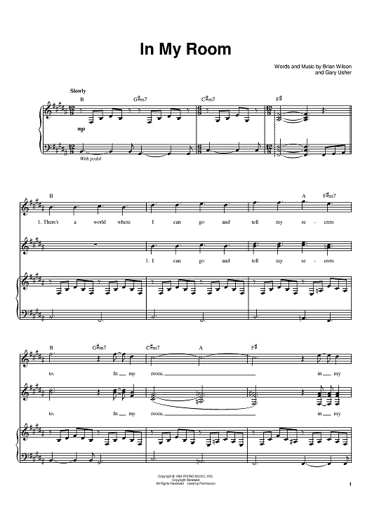 Digital Sheet Music for In My Room by Brian Wilson, The Beach Boys, Gary Usher scored for Piano/Vocal/Chords; id:371789