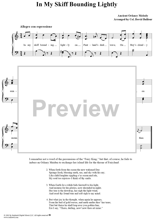 Digital Sheet Music for In My Skiff Bounding Lightly by Col. David Balfour scored for Voice/Piano; id:276451