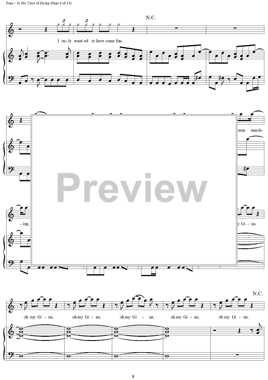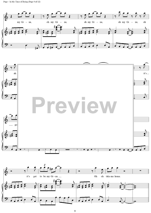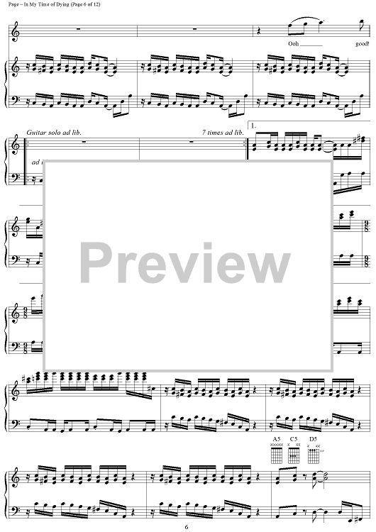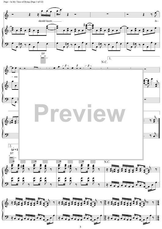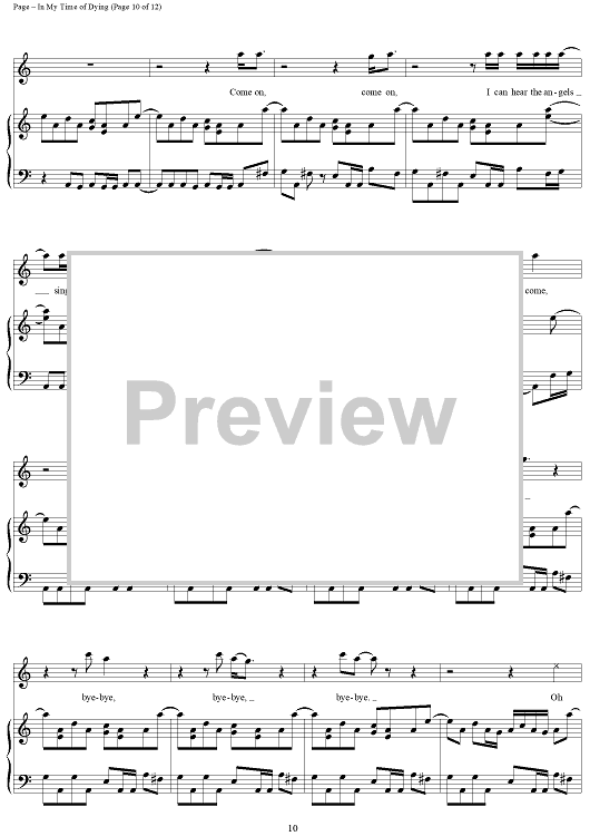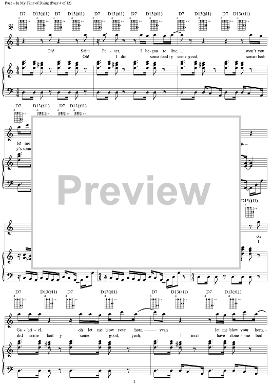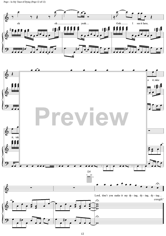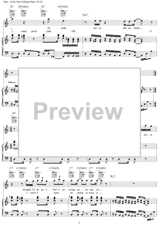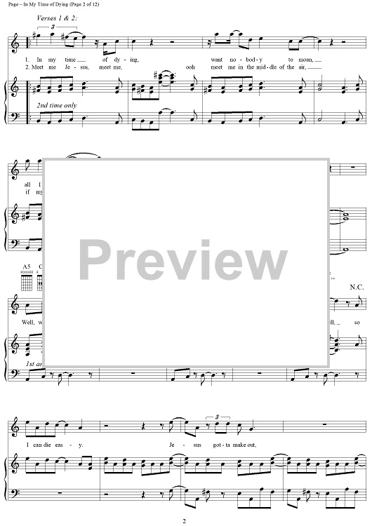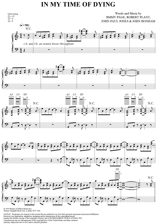 Digital Sheet Music for In My Time of Dying by Jimmy Page, John Paul Jones, John Bonham, Led Zeppelin, Robert Plant scored for Piano/Vocal/Chords; id:253994