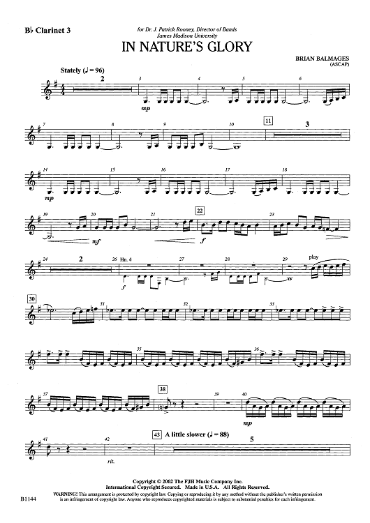 "In Nature's Glory - Bb Clarinet 3" Sheet Music by Brian Balmages