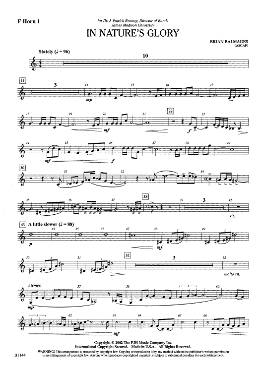 Digital Sheet Music for In Nature's Glory - F Horn 1 by Brian Balmages scored for Concert Band; id:443076
