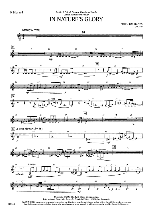 Digital Sheet Music for In Nature's Glory - F Horn 4 by Brian Balmages scored for Concert Band; id:443079