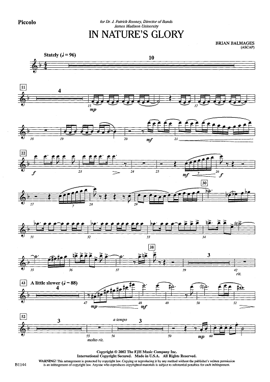 "In Nature's Glory - Piccolo" Sheet Music by Brian Balmages