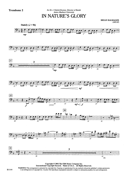 "In Nature's Glory - Trombone 2" Sheet Music by Brian Balmages