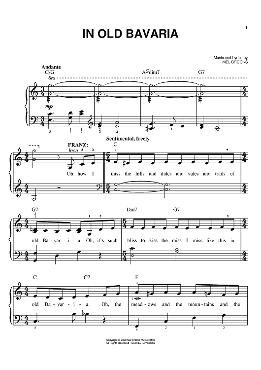 Digital Sheet Music for In Old Bavaria by Mel Brooks scored for Easy Piano; id:372600