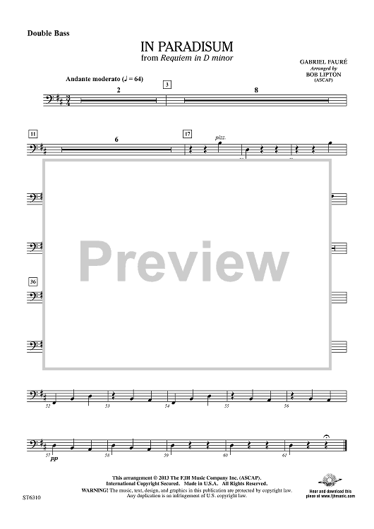 Digital Sheet Music for In Paradisum (from Requiem in D minor) - Double Bass by Gabriel Fauré, Bob Lipton scored for String Orchestra; id:436959