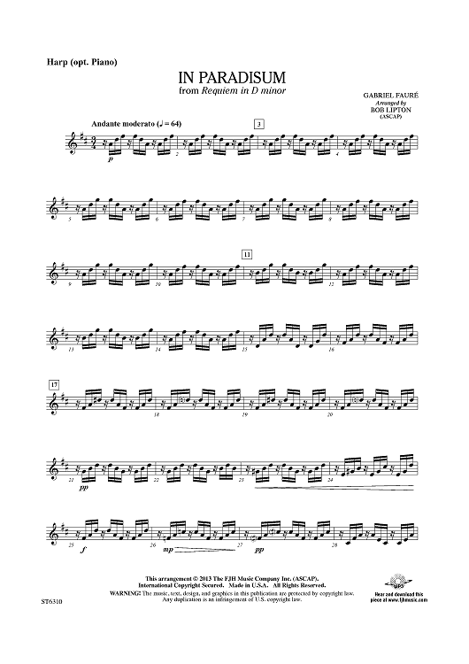 "In Paradisum (from Requiem in D minor) - Harp" Sheet Music by Gabriel Fauré