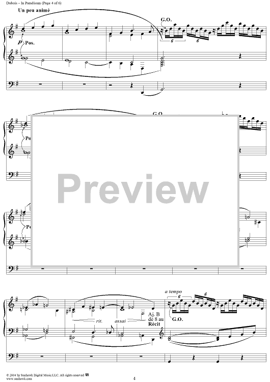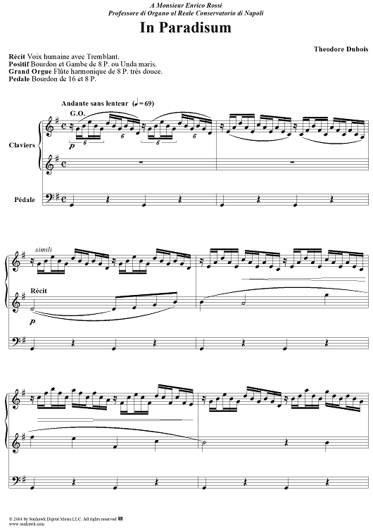 Digital Sheet Music for In Paradisum in G Major by Theodore Dubois scored for Organ Solo; id:298056