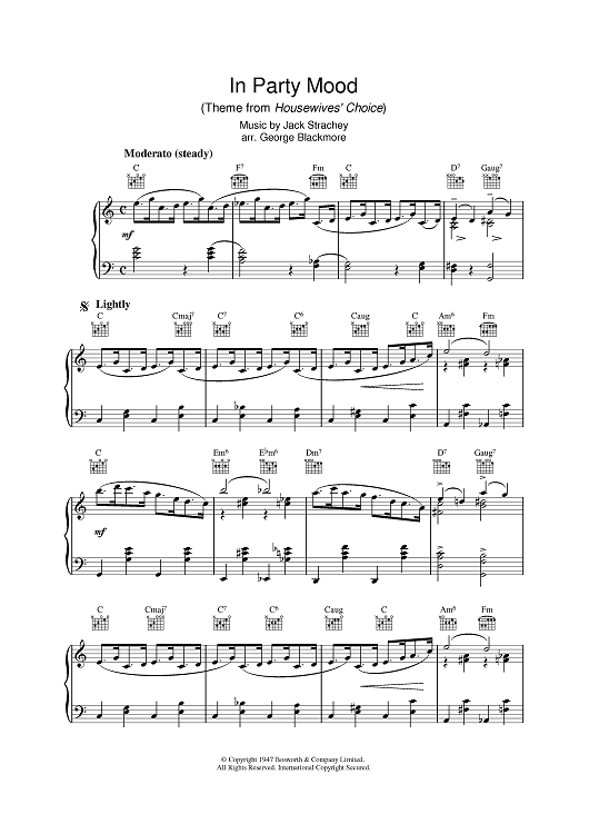 Digital Sheet Music for In Party Mood (theme from Housewives' Choice) by Jack Strachey, Paul Angelis, Gawn Grainger scored for Piano; id:394416