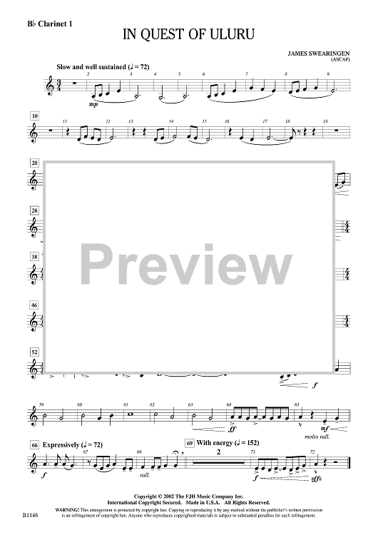 Digital Sheet Music for In Quest of Uluru - Bb Clarinet 1 by James Swearingen scored for Concert Band; id:499933