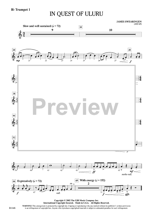 Digital Sheet Music for In Quest of Uluru - Bb Trumpet 1 by James Swearingen scored for Concert Band; id:499939