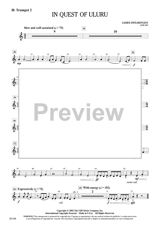 Digital Sheet Music for In Quest of Uluru - Bb Trumpet 2 by James Swearingen scored for Concert Band; id:499940