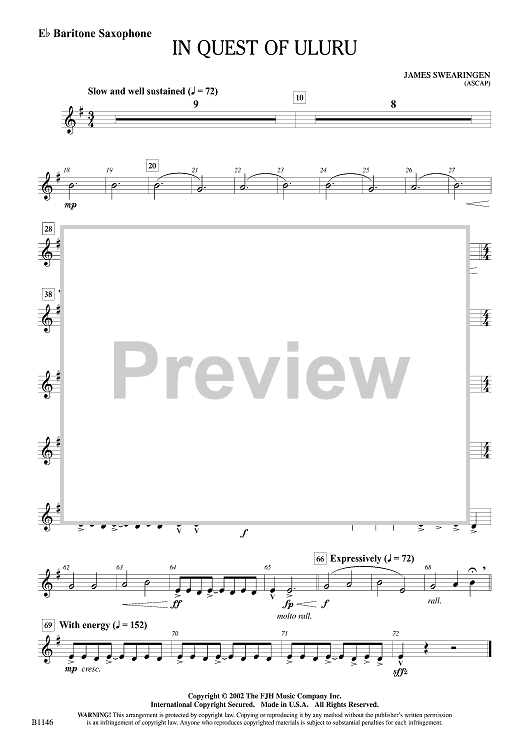 Digital Sheet Music for In Quest of Uluru - Eb Baritone Sax by James Swearingen scored for Concert Band; id:499938