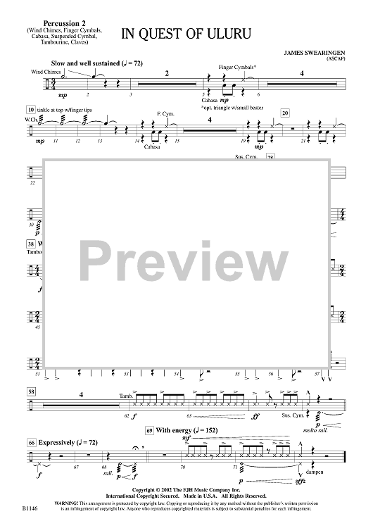 Digital Sheet Music for In Quest of Uluru - Percussion 2 by James Swearingen scored for Concert Band; id:499949