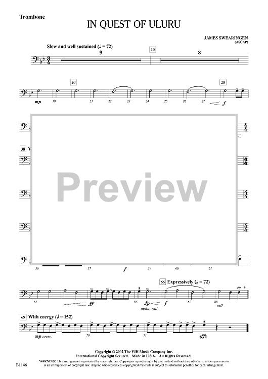 Digital Sheet Music for In Quest of Uluru - Trombone by James Swearingen scored for Concert Band; id:499942