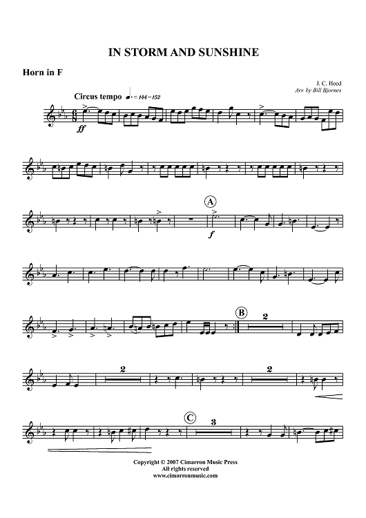 Digital Sheet Music for In Storm and Sunshine - Horn in F by , J. C. Heed, Bill Bjornes scored for Brass Quintet; id:360849