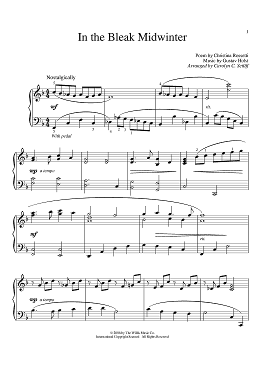 Digital Sheet Music for In The Bleak Midwinter by Christina Rossetti, Gustav Holst scored for Piano; id:390982