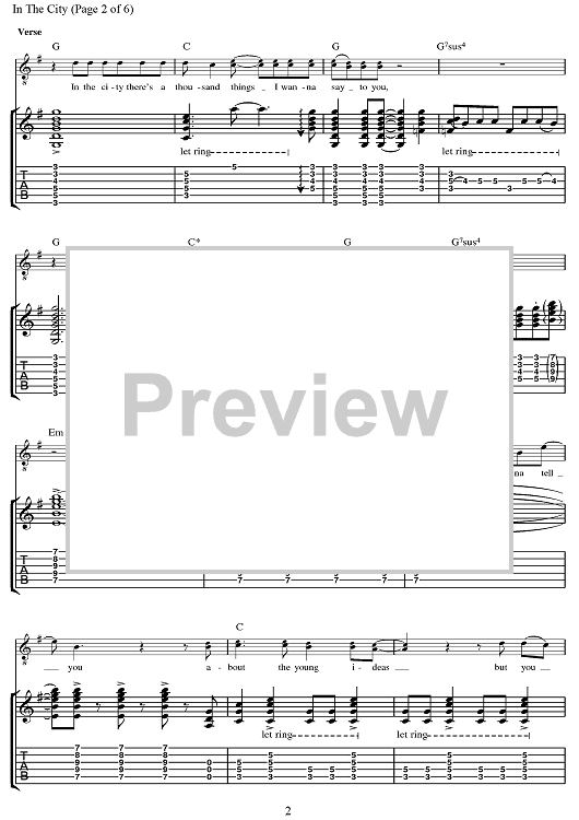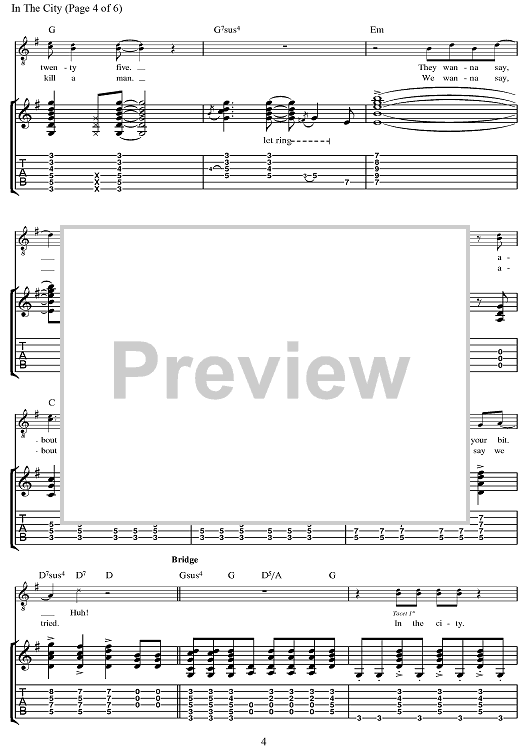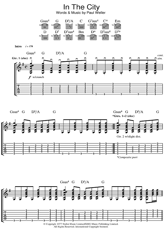 "In The City" Sheet Music by The Jam