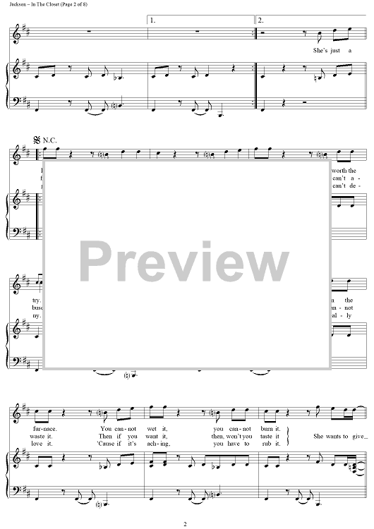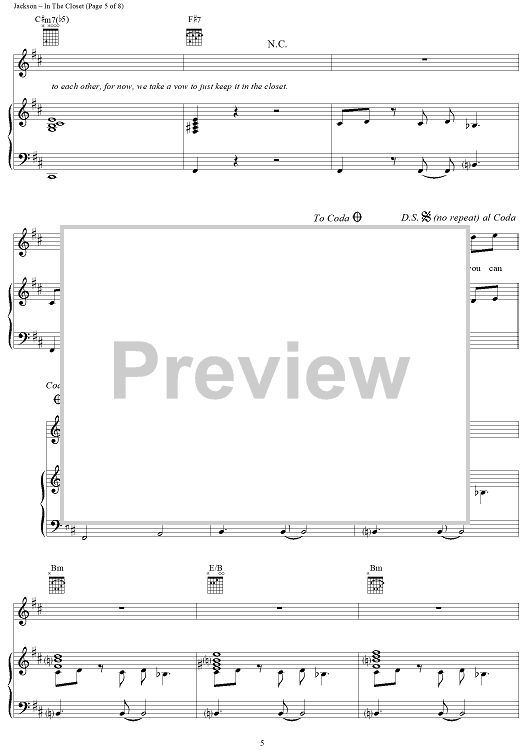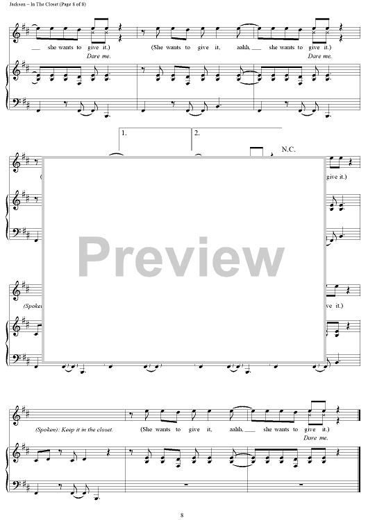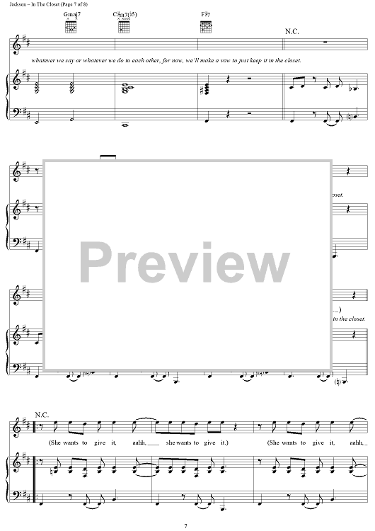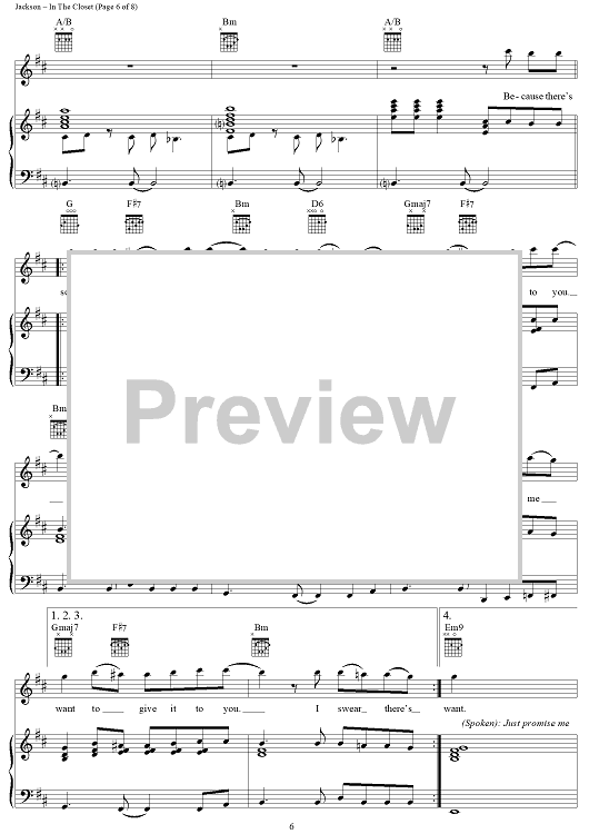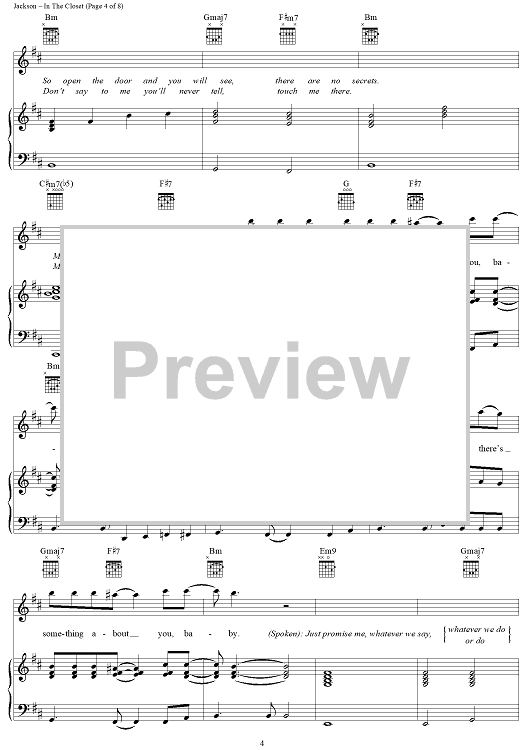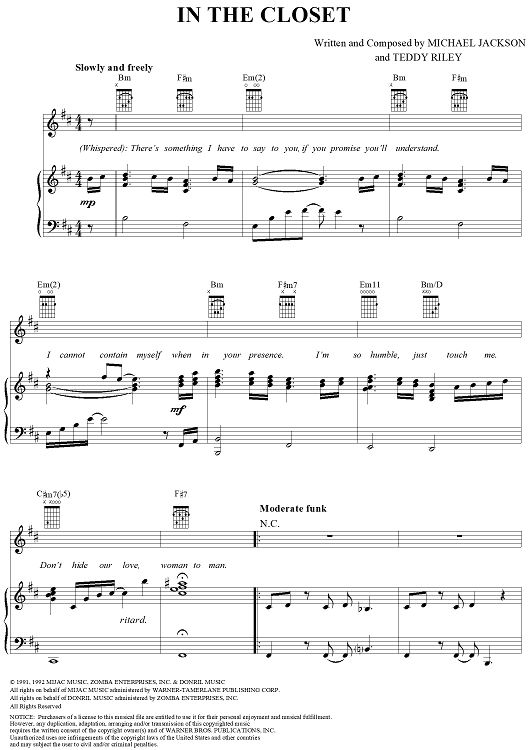 Digital Sheet Music for In The Closet by Michael Jackson, Teddy Riley scored for Piano/Vocal/Chords; id:241670