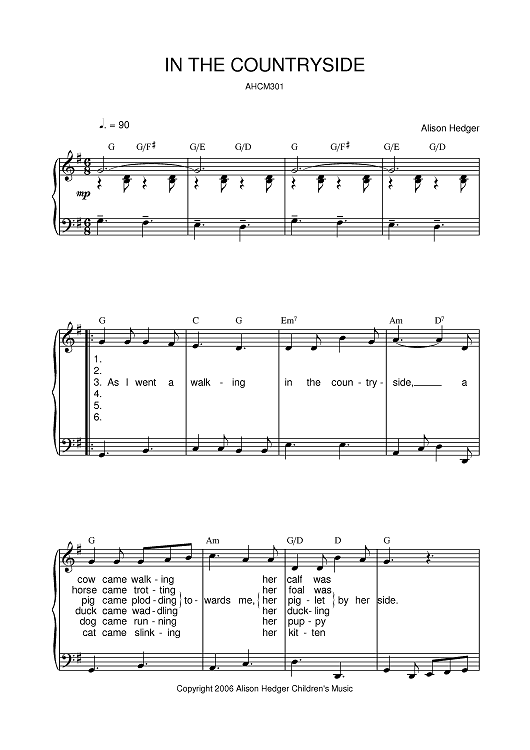 Digital Sheet Music for In The Countryside by Alison Hedger scored for Piano/Vocal/Chords; id:391578