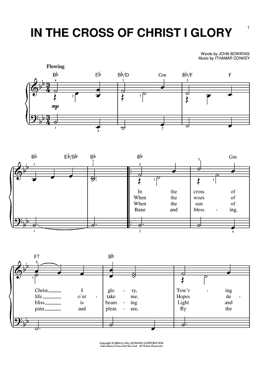 Digital Sheet Music for In The Cross Of Christ I Glory by John Bowring, Ithamar Conkey scored for Easy Piano; id:381130