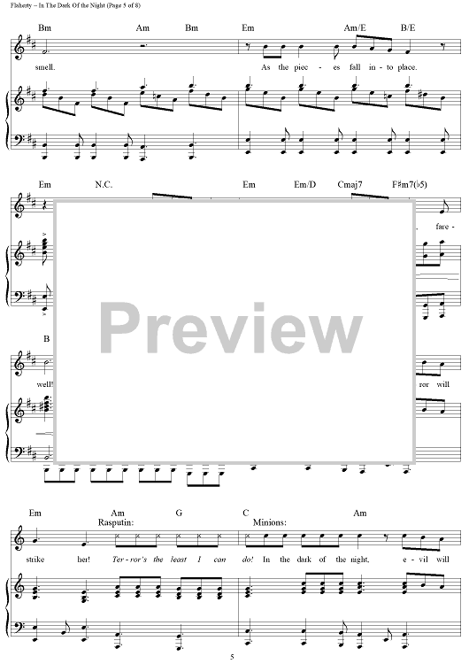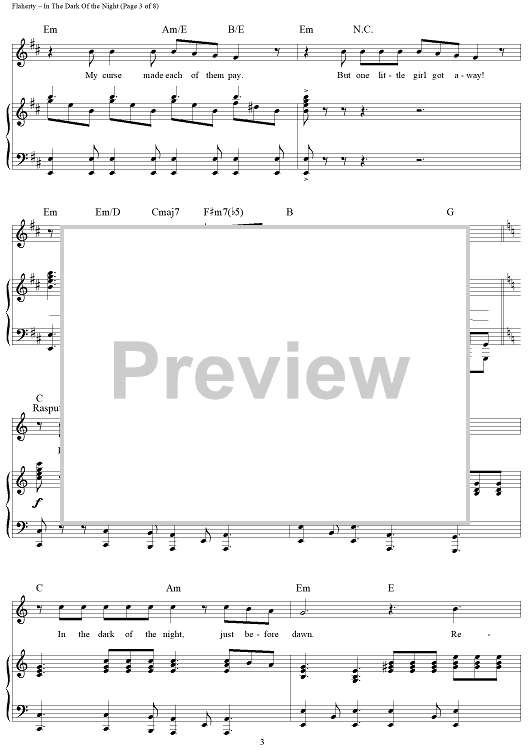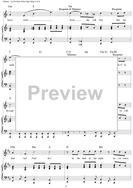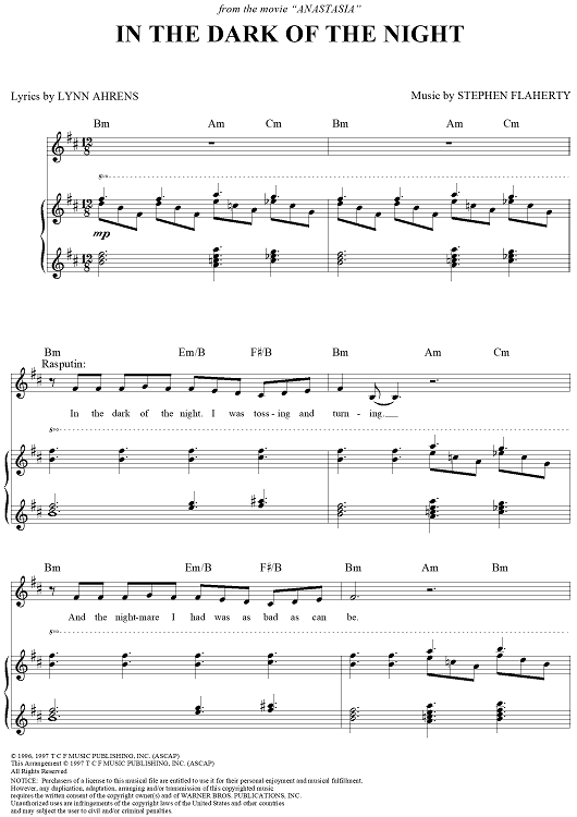 Digital Sheet Music for In the Dark Of the Night by Stephen Flaherty, Lynn Ahrens scored for Piano/Vocal/Chords; id:120455