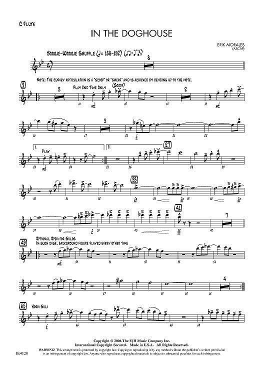 Digital Sheet Music for In the Doghouse - C Flute by Erik Morales scored for Jazz Ensemble; id:456060