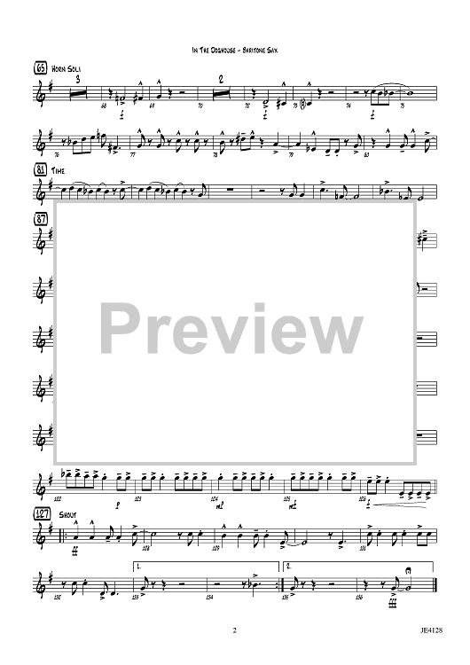 Digital Sheet Music for In the Doghouse - Opt. Baritone Sax by Erik Morales scored for Jazz Ensemble; id:456046