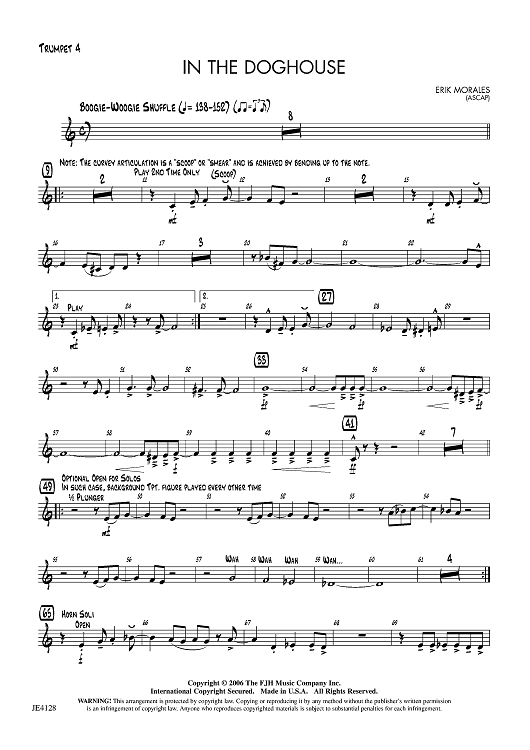 Digital Sheet Music for In the Doghouse - Opt. Trumpet 4 by Erik Morales scored for Jazz Ensemble; id:456050