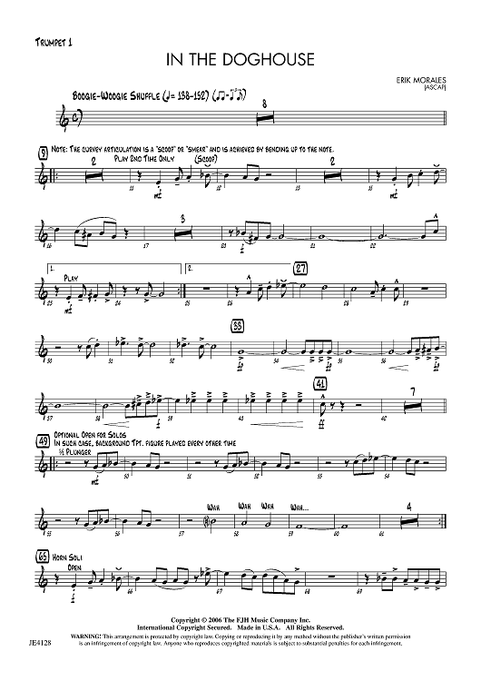 Digital Sheet Music for In the Doghouse - Trumpet 1 by Erik Morales scored for Jazz Ensemble; id:456047